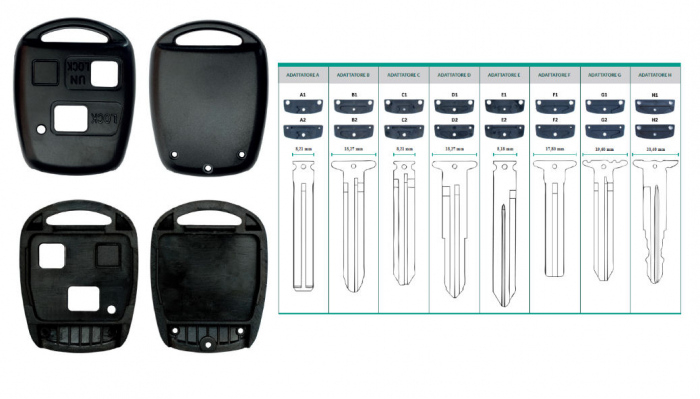 Kitul include 2 capace și 8 perechi de adaptoare (față și spate).