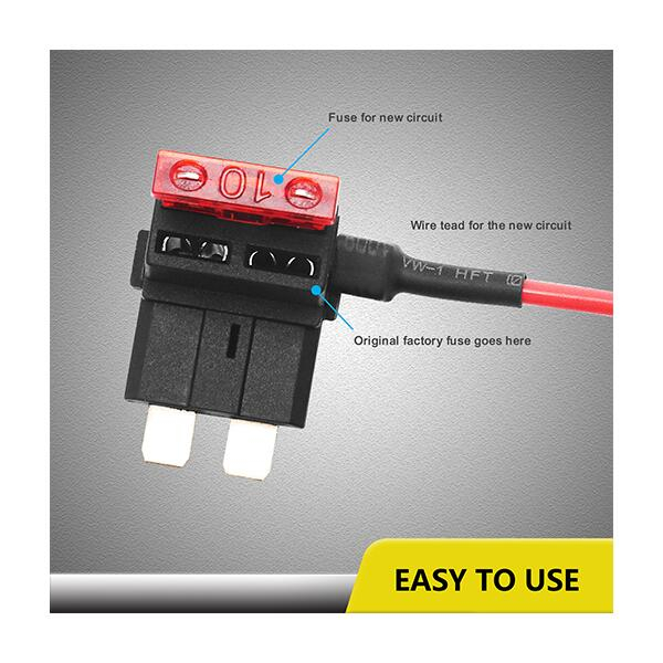 Se poate utiliza la cablarea sau adăugarea unui radio de 12V, a unei benzi luminoase LED, a unei camere de bord, a unui GPS, a unei camere video pentru marșarier sau a oricărui alt dispozitiv electronic mic care necesită cablare directă în cutia de siguranțe