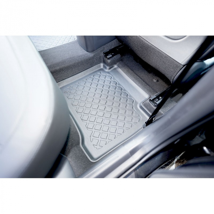Materialul covoraselor gen tavita cu margini inalte pentru Kia Niro nu este cauciuc obisnuit, ci un cauciuc artificial intarit, un polimer (reinforced thermoplastic elastomer) care combina avantajele cauciucului cu cele ale plasticului de inalta rezistenta si durabilitate.