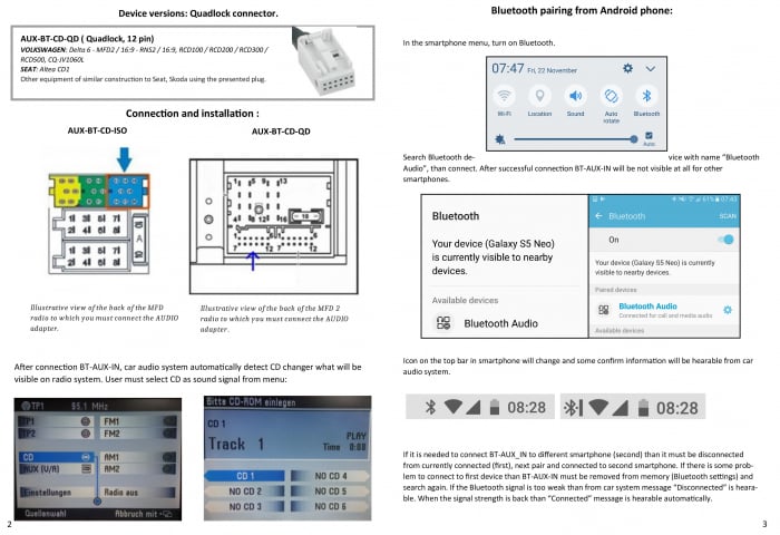 Alana, Alpha(New Beetle), Altea, Aura, Beta, Beta 5, Beta T4, Chorus 2, Concert 1, Concert 2, Delta, Elba, Gamma, Gamma 5, Grundig, Grundig MS501, Grundig MS502, Highline, Ibiza GP1(SS2), Lena, MCD, MFD Navi, Monsoon(New Beetle), Navi RNS, Premium 4 Clarion, Premium 5 Delco, RNS, Scala, Skoda Navi, Sound 2, Symphony, Symphony 1, Symphony 2