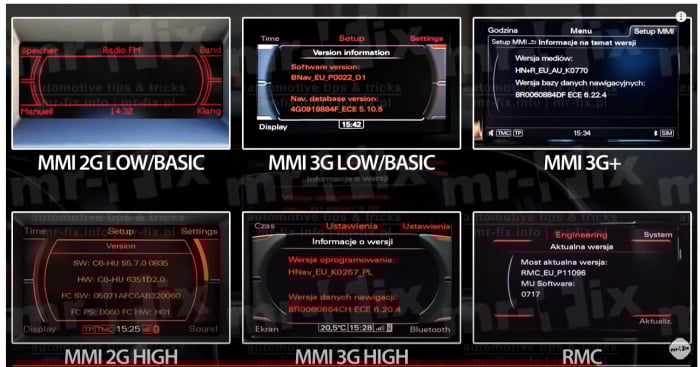 Nu este compatibil cu MMI 2G sau MMI 3G Plus sau cu alte generatii MMI.