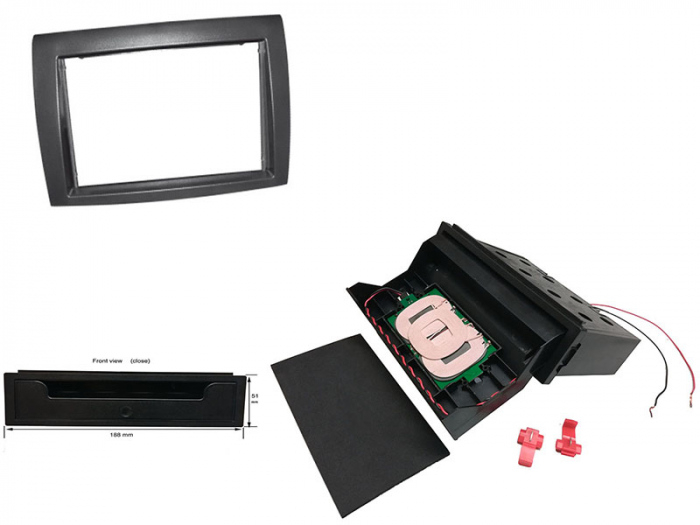 Rama radio dublu DIN cu buzunar basculant si incarcator wireless