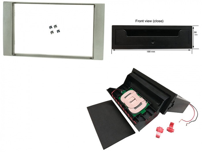 Rama radio dublu DIN cu buzunar basculant si incarcator wireless