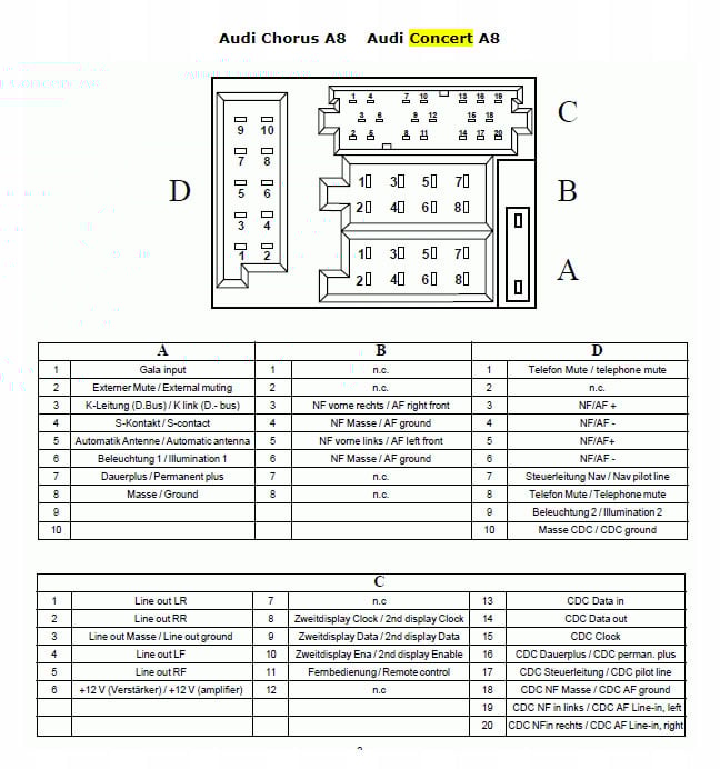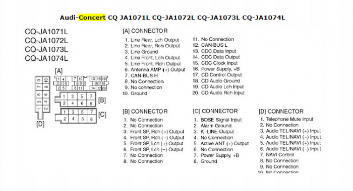 Mufa adaptor iso quadlock,pentru trecerea de la concert 2 la concert 3 sau RNS-E