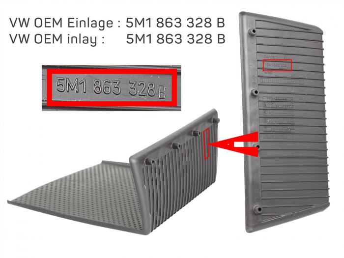 Numărul piesei VW este pe partea din spate a insertului OEM (a se vedea Figura 4)
