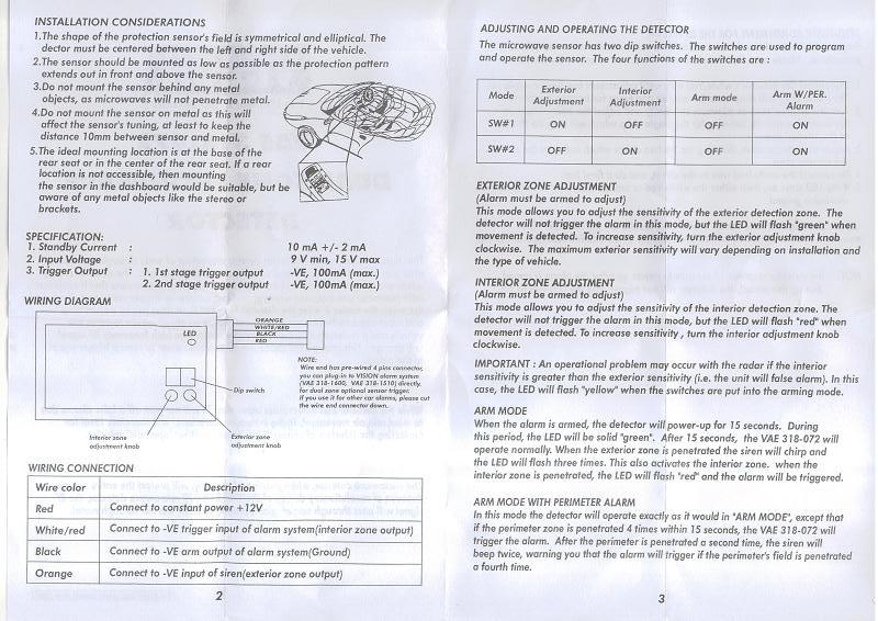 Detecteaza miscarea in interiorul si exteriorul vehicolului folosind tehnologia frecventelor radio.