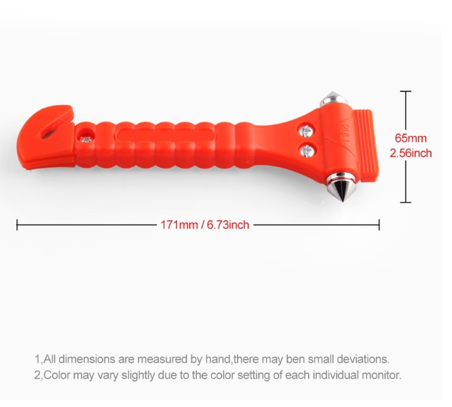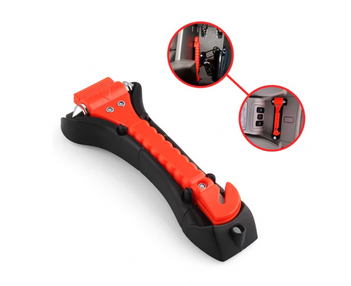 Ciocanul multifunctional pentru urgente va va fi de foarte mare ajutor in situatiile critice ce pot aparea la drum - cu el spargeti usor geamul, iar cu cutterul puteti taia centurile blocate. Cutterul este ascuns in maner, astfel incat sa evite taierea mainii la prinderea ciocanului. Suportul ciocanului este inclus in ambalaj.