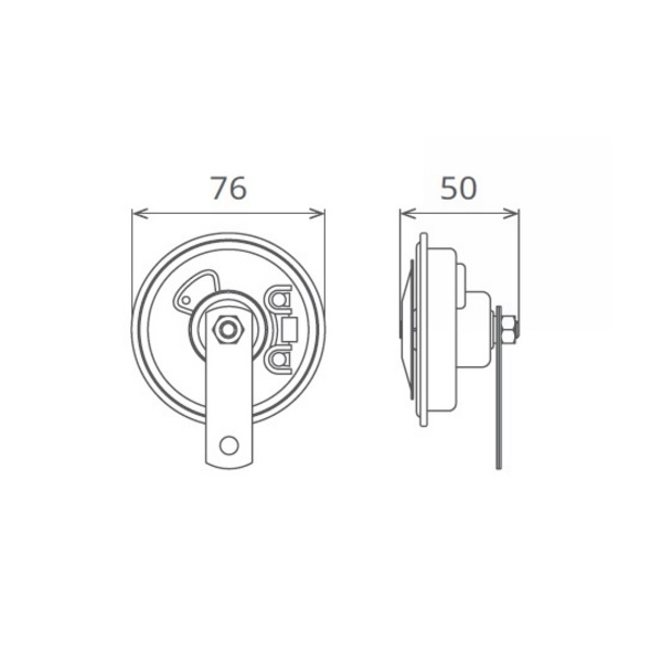 Claxonul de tip disc 55B este un claxon nou dezvoltat, cu dimensiuni mai mici si un design mai compact.