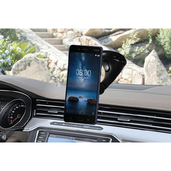 Suportul se prinde de parbriz sau bord cu ajutorul ventuzei, iar dispozitivul se ataseaza de suport prin intermediul magnetului;