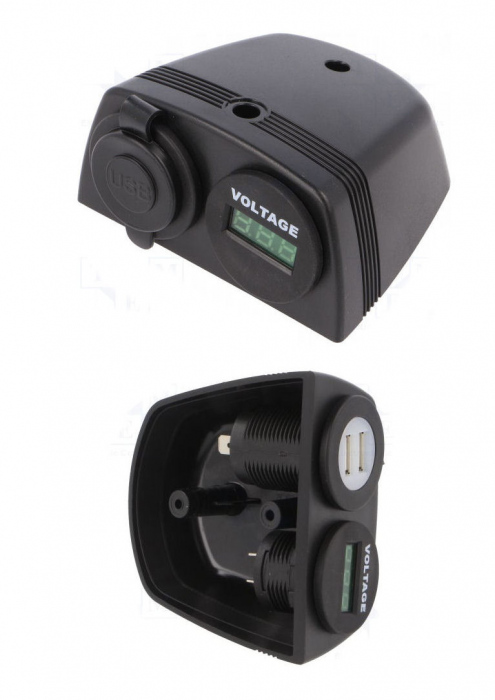 Voltmetru cu 2 soclu USB x 2.1A, verde, 6-33VDC