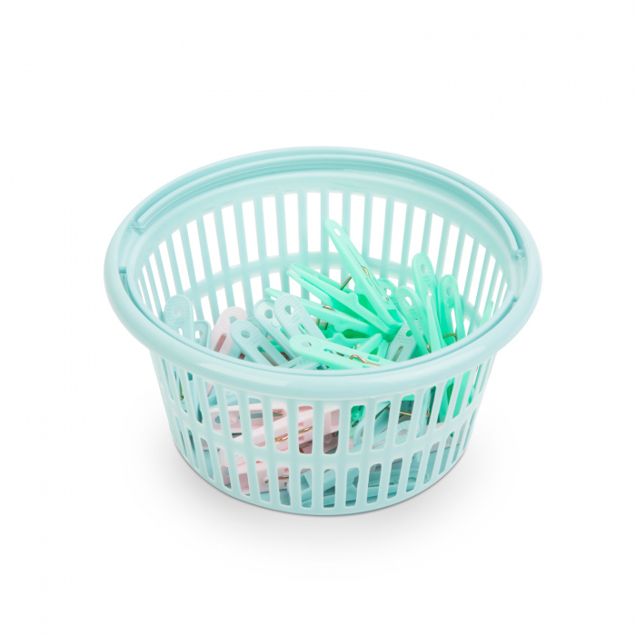 Set cleme colorate (4 culori) din plastic cu cos practic de depozitare, cu mânere.