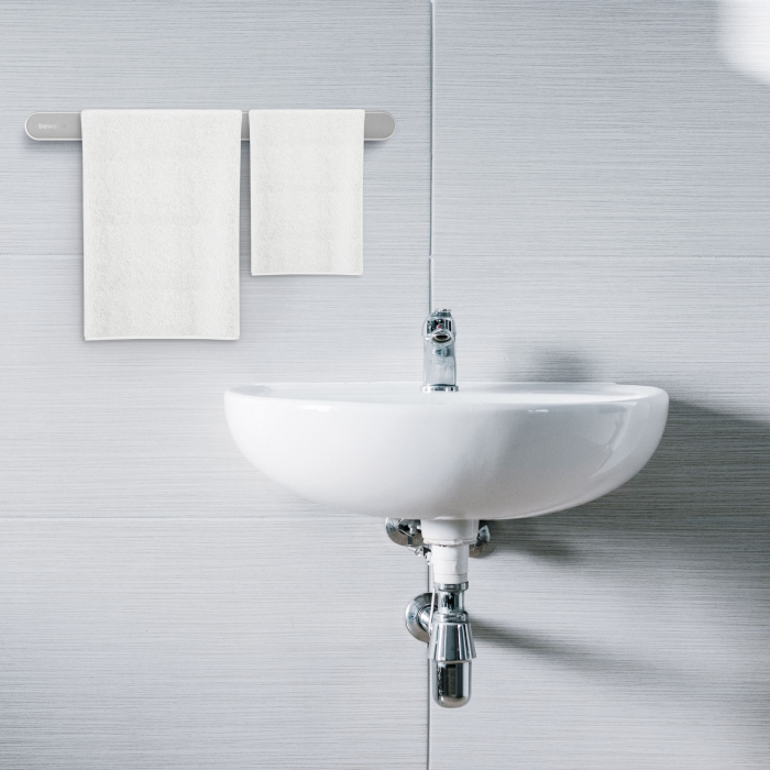 Suport pentru prosoape cu o suprafata puternic autoadeziva. Poate fi lipit pe orice suprafata neteda, preferabil faianta sau sticla.
