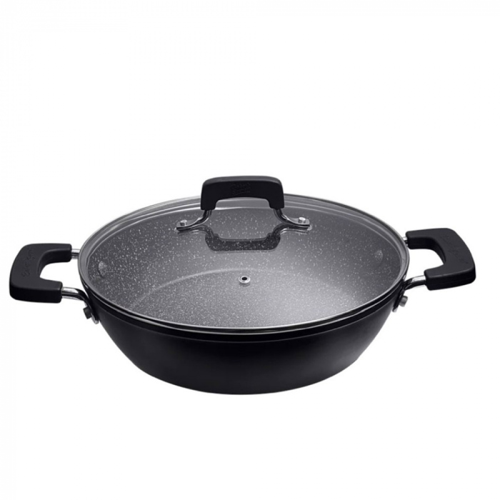 Aceasta tigaie multifunctionala este fabricata din aluminiu de înalta calitate, care asigura nu numai durabilitate si rezistenta la coroziune, dar si o manevrare usoara. Proprietatile antiaderente ale tigaii va permit sa pregatiti mese sanatoase si gustoase. Fara substante nocive, astfel încât sa fii sigur ca alimentele tale nu sunt adaugate substante nocive în timpul procesului de preparare. Fie ca este vorba de gatit de zi cu zi sau de ocazii speciale, aceasta tigaie antiaderenta este un must-have în fiecare bucatarie! Descoperiti o noua dimensiune a gatitului usor si sanatos cu aceasta tigaie de înalta calitate, alegerea perfecta pentru fiecare bucatar!