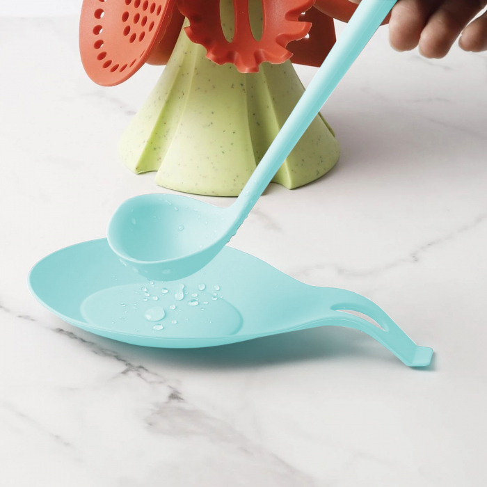 Acest suport din silicon colecteaza grasimea si lichidul care picura din lingura de lemn, astfel încât sa poti lucra pe o masa curata si ordonata.
