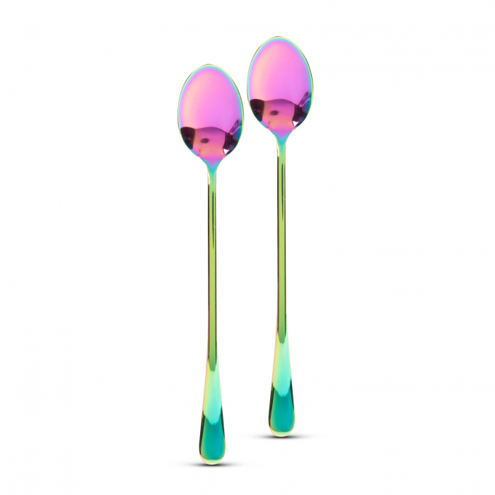 Fabricat din otel inoxidabil, dar usor set de linguri de cafea. Mânerul extra lung garanteaza un amestec confortabil de diferite specialitati de cafea, lattee si cafele lungi. Mânerul largit ofera o prindere confortabila. De asemenea, poate fi o alegere ideala atunci când consumati cocktailuri. Design elegant Culoarea curcubeului de titan Usor de curatat Otel inoxidabil durabil Mâner pentru o prindere confortabila Dimensiune: 195 x 32 x 1,8 mm Continut pachet: 2 linguri Material: otel inoxidabil Culoare: curcubeu de titan Se poate spala în masina de spalat vase: Nu. Greutate: ~ 26 g / lingura