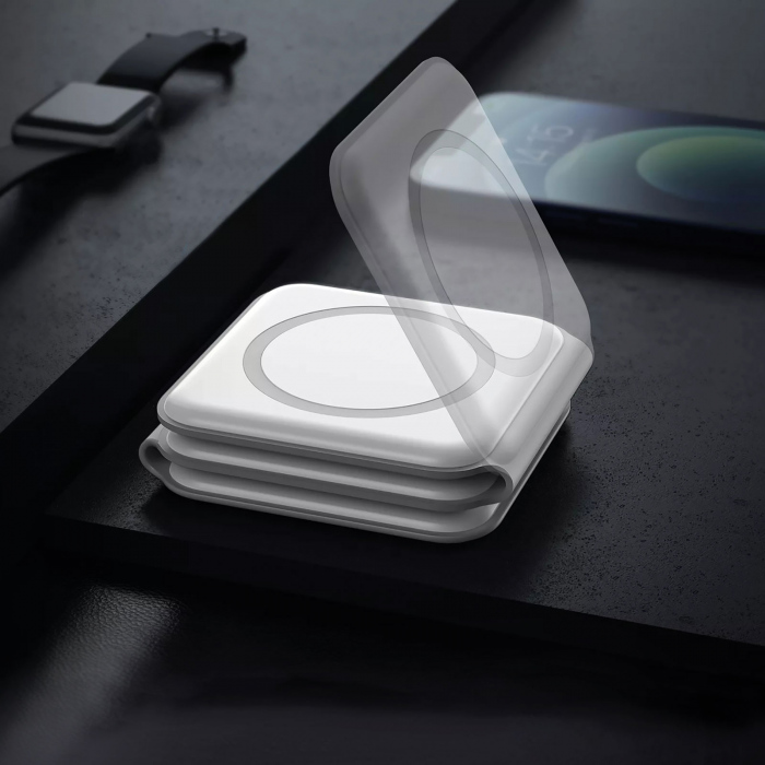 Indiferent daca calatoriti sau încarcati acasa sau la birou, acest încarcator wireless cu siguranta nu va va dezamagi. Compatibil cu telefoanele Apple iPhone, castile AirPods si dispozitivele cu ceas inteligent Apple Watch. Datorita dimensiunilor sale compacte, nu ocupa mult spatiu pe noptiera si poate încapea si în buzunarul lateral al valizei atunci când calatoresti. Avantajul este ca puteti raspunde cu usurinta la apelurile primite în timp ce încarcati, trebuie doar sa ridicati telefonul de pe suportul de încarcare. Poate fi o alegere ideala pentru casa, birou, dormitor. O conditie prealabila este ca dispozitivul dvs. mobil sa aiba o functie de încarcare wireless din fabrica!