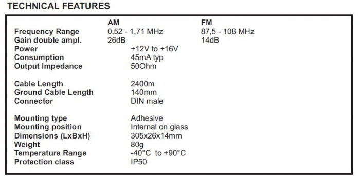 Antena electronica de parbriz dublu amplificata,