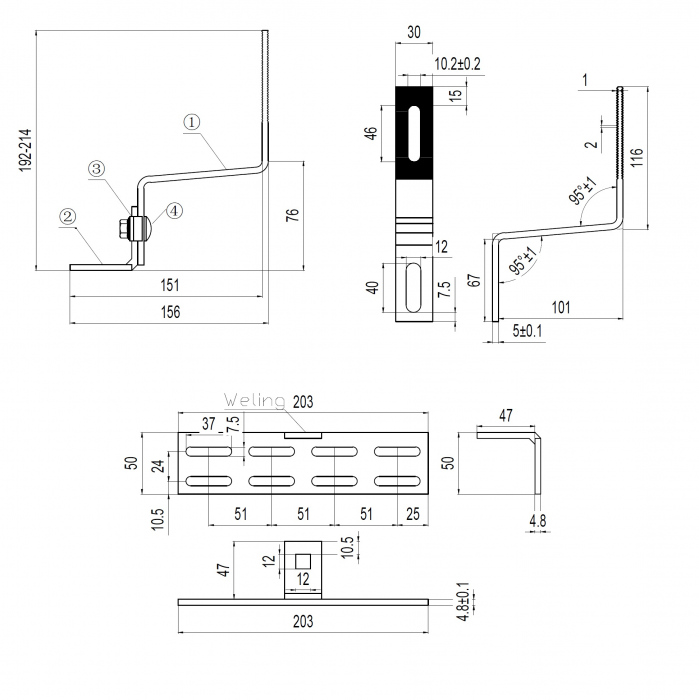 Suport reglabil pentru fixare panou fotovoltaic pe acoperis cu tigla
