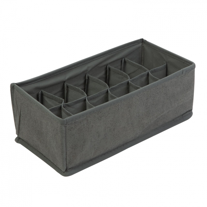 Descoperiti solutiile noastre practice si elegante de depozitare! Aceasta cutie de depozitare este alegerea perfecta pentru a mentine ordinea si organizarea în casa ta. Structura usoara, dar durabila a cutiei de depozitare asigura ca va fi fiabila pe termen lung pentru organizare. Stratul exterior este realizat din tesatura de calitate, care nu numai ca ofera un aspect estetic, dar este si rezistent si usor de curatat. Rigiditatea structurii interne este asigurata de o foaie solida de carton multistratificata. Datorita dimensiunii convenabile a cutiei de depozitare, se potriveste cu usurinta pe rafturi, dulapuri sau chiar sub pat. Acest lucru va permite sa utilizati la maximum spatiul disponibil, pastrând în acelasi timp obiectele importante organizate si usor accesibile. O cutie de depozitare din tesatura poate fi alegerea perfecta pentru depozitarea îngrijita a hainelor, pantofilor, jucariilor, cartilor sau a oricarui alt articol. Atunci cand nu este folosita, depozitarea intr-un spatiu restrans este asigurata de fermoarul situat in partea de jos, care se poate inchide la utilizare.