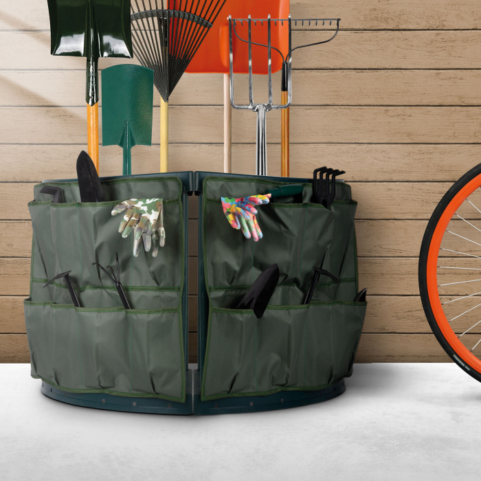 Poate fi folosit pentru depozitarea uneltelor mici, cum ar fi foarfece de taiat, sape, jardiniere etc. Poti lua cu tine chiar suportul din gradina, astfel ca toate sculele vor fi disponibile in timpul lucrului, dar consola se poate fixa si pe perete cu ajutorul celor 4 puncte de fixare.