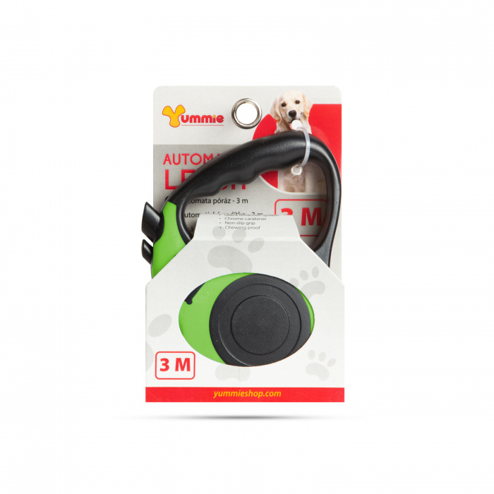 Cu ajutorul lesei, animalul tau de companie nu va mai hoinari, poti controla cu usurinta cât de departe se poate îndeparta animalul tau de tine. Sistemul de retragere a lesei încorporat previne caderea sau încurcarea lesei libere. Cu un sistem de frânare puternic, va puteti controla cu usurinta animalul de companie. Sistem de frânare puternic cu o singura mâna Sistem de retragere rapida Carabinier cromat Mâner anti-alunecare Masticabil Lungime lesa: 3 m Capacitate maxima de încarcare: 30 kg Dimensiunea lesei 130 x 90 x 28 mm Culoare: verde Material: plastic Greutate: ~ 115 g
