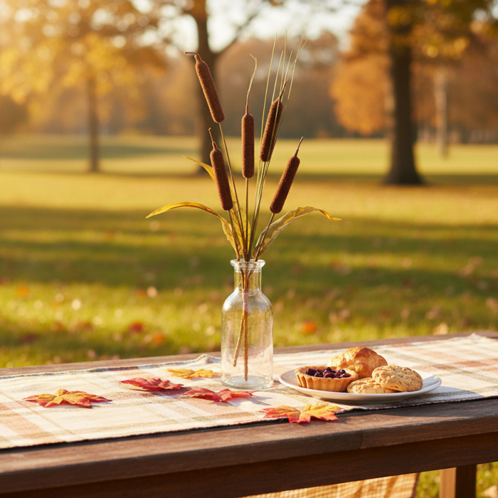 Îmbogateste-ti decorul de sezon cu aceasta papura decorativa de toamna, disponibila în doua variante elegante: galben auriu si maro intens. Designul sau realist si aspectul natural o fac alegerea ideala pentru a aduce o nota de caldura si armonie în orice spatiu.