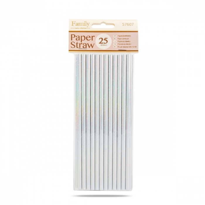 Paiele din hârtie sunt utilizate pe larg în diferite evenimente, petreceri si sarbatori. Acest pachet contine 25 de paie din hârtie. Paiele au o suprafata lucioasa si irizanta, oferind un efect special. Sunt o alegere excelenta pentru Halloween, Craciun, petreceri, cine festive si întâlniri de grup, dar datorita aspectului lor deosebit, pot fi folosite în orice zi a anului. Paiele din hârtie au un impact ecologic mai mic decât cele din plastic, fiind o alternativa prietenoasa cu mediul. Paiele au o lungime de 20 cm, fiind ideale si pentru bauturi din pahare înalte si înguste.
