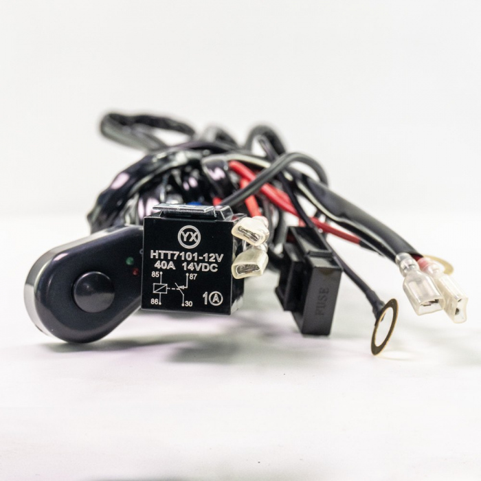 Acest cablu cu întrerupator este conceput pentru Bari Led sau Proiectoare LED auto, oferind o tensiune de functionare variabila între 12 si 24V. Produsul include doua iesiri si este capabil sa suporte o putere maxima de 480W, cu un curent maxim de 40A. Ideal pentru vehicule off-road, camioane, SUV-uri si utilaje agricole, cablul asigura o conexiune sigura si eficienta, fiind rezistent la conditii de mediu extreme, cu o temperatura de functionare cuprinsa între -30C si +85C. Întrerupatorul integrat ofera un control facil al luminilor.