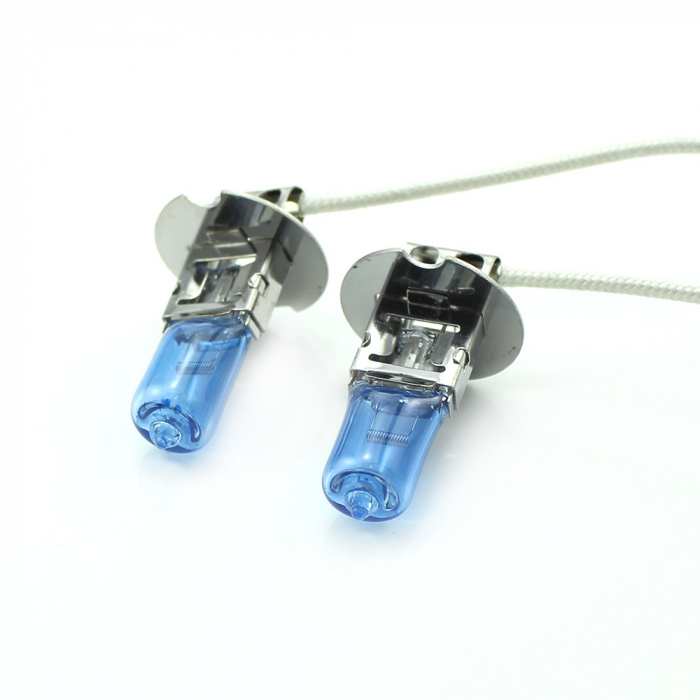 Becurile H3 LONG LIFE, 55W - Alb Xenon au intensitatea luminii de doua ori mai mare.