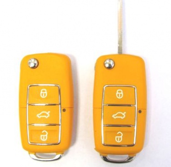 Carcasa telecomanda compatibila VW tip briceag cu 3 butoane culoare galbena