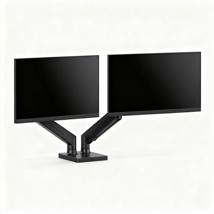 Datorita bratelor duble si telescopice, ambele monitoare pot fi reglate independent, permitând o pozitionare optima pentru confort vizual si eficienta maxima. Constructia robusta din aluminiu si otel asigura durabilitate si siguranta, iar prinderea de tip clema economiseste spatiu pe suprafata biroului.