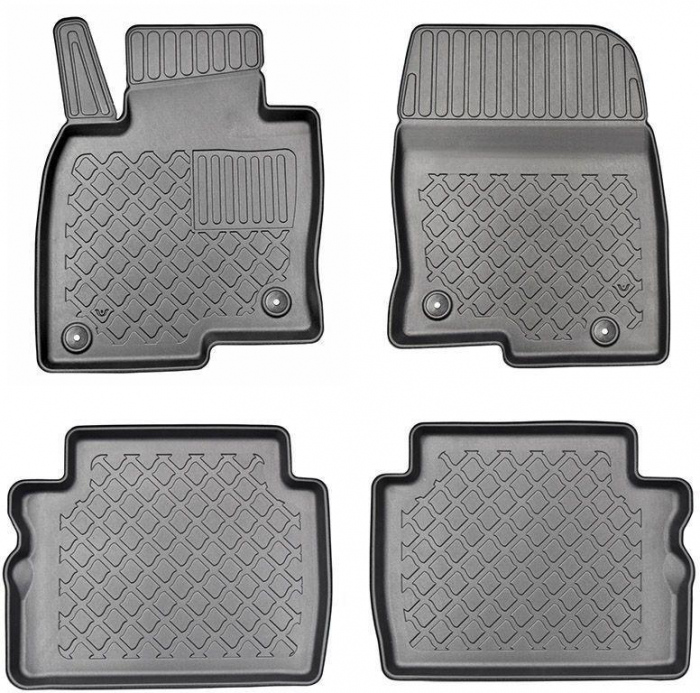 Covorase (presuri) cauciuc auto Mazda CX5 , fabricatie 2017 - prezentAvantaje:Covorase autocu margine inaltata pentruMazda CX5pastreaza valoarea interiorului masinii tale;Presuri autoMazda CX5sunt deosebit de flexibile si au o grosime optima, fiind astfel foarte calitative si rezistente in timp.Descrierecovorase auto - presuri auto Mazda CX5:~ Se potrivesc perfect la forma si dimensiunile podelei masinii.~ Sunt produse din cauciuc de calitate excelenta, fara miros, placut la atingere, foarte bine finisat, rezistent, durabil.~ Au o margine de protectie inalta de 1 cm care impiedica scurgerea apei si a murdariei.~ Impermeabile si rezistente la temperaturi inalte si joase, la uleiuri si substante chimice.~ Suprafata striata impiedica alunecarea incaltamintei si retine murdaria si apa.~ Presul soferului are intarituri suplimentare in dreptul calcaielor soferului, locul cel mai expus uzurii.~ Daca masina are prevazute sisteme de prindere din fabrica, covorasele au deasemenea prevazute locasuri de fixare.~ Covorasele au prevazute pe spate crampoane conice de cauciuc ce impiedica alunecarea si deplasarea acestora.~ Urmand conturul podelei, covorasele sunt impiedicate sa se deplaseze, neavand practic spatiu pentru acest lucru.
