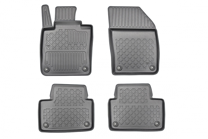 Materialul din care sunt confectionate covorasele tip tavita este un "reinforced thermoplastic elastomer", un cauciuc artificial durificat, polimer care combina avantajele cauciucului cu cele ale plasticului de inalta rezistenta, este materialul din care sunt produse tavitele pentru portbagaj Premium Cool Liner™, dar ceva mai gros.