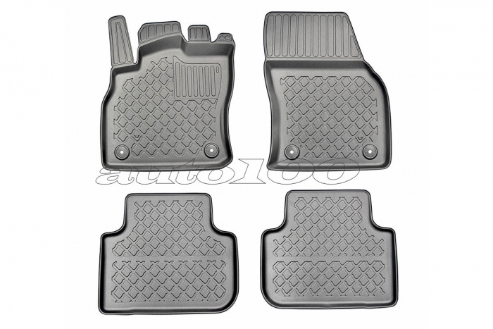 Materialul din care sunt confectionate covorasele tip tavita este un "reinforced thermoplastic elastomer", un cauciuc artificial durificat, polimer care combina avantajele cauciucului cu cele ale plasticului de inalta rezistenta, este materialul din care sunt produse tavitele pentru portbagaj Premium Cool Liner™, dar ceva mai gros.
