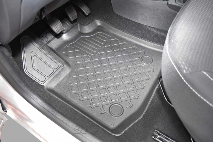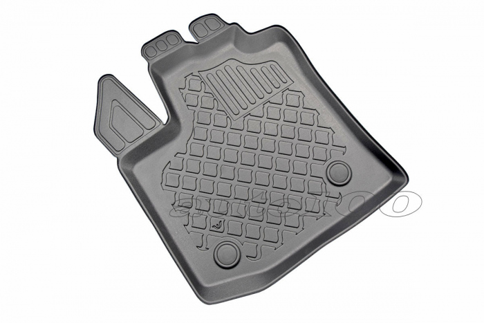 Materialul din care sunt confectionate covorasele tip tavita este un "reinforced thermoplastic elastomer", un cauciuc artificial durificat, polimer care combina avantajele cauciucului cu cele ale plasticului de inalta rezistenta, este materialul din care sunt produse tavitele pentru portbagaj Premium Cool Liner™, dar ceva mai gros.