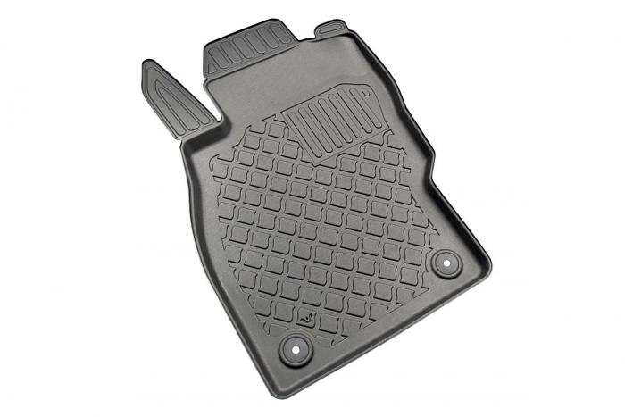 Materialul din care sunt confectionate covorasele tip tavita este un "reinforced thermoplastic elastomer", un cauciuc artificial durificat, polimer care combina avantajele cauciucului cu cele ale plasticului de inalta rezistenta, este materialul din care sunt produse tavitele pentru portbagaj Premium Cool Liner™, dar ceva mai gros.