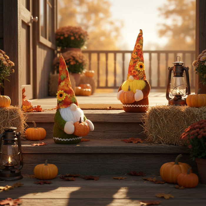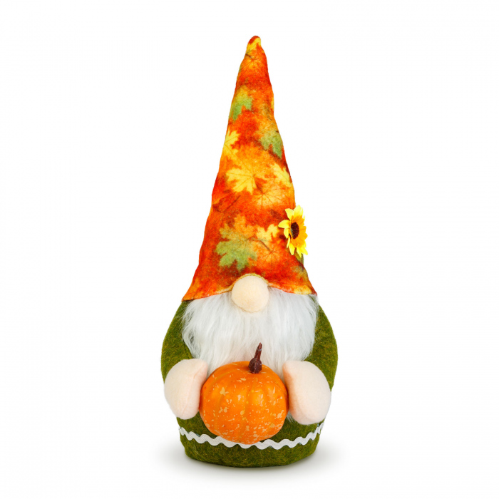 Îmbogateste atmosfera casei tale cu aceasta figurina decorativa de toamna, reprezentând un mos simpatic cu barba lunga si dovleac în mâna. Realizat din materiale textile de calitate, cu detalii atent lucrate si o caciula colorata, acest decor aduce un strop de veselie si farmec rustic în orice încapere.