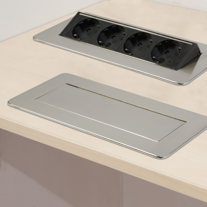 Alege un design modern si functional pentru mobilierul tau cu acest prelungitor încastrat cu finisaj metalic satinat. Ideal pentru birouri, bucatarii si spatii de lucru, acest model combina eleganta estetica cu utilitatea practica, oferind acces usor la alimentare atunci când ai nevoie si un aspect curat atunci când nu este folosit.