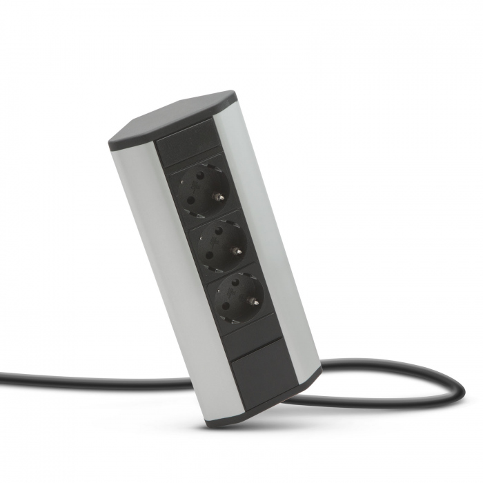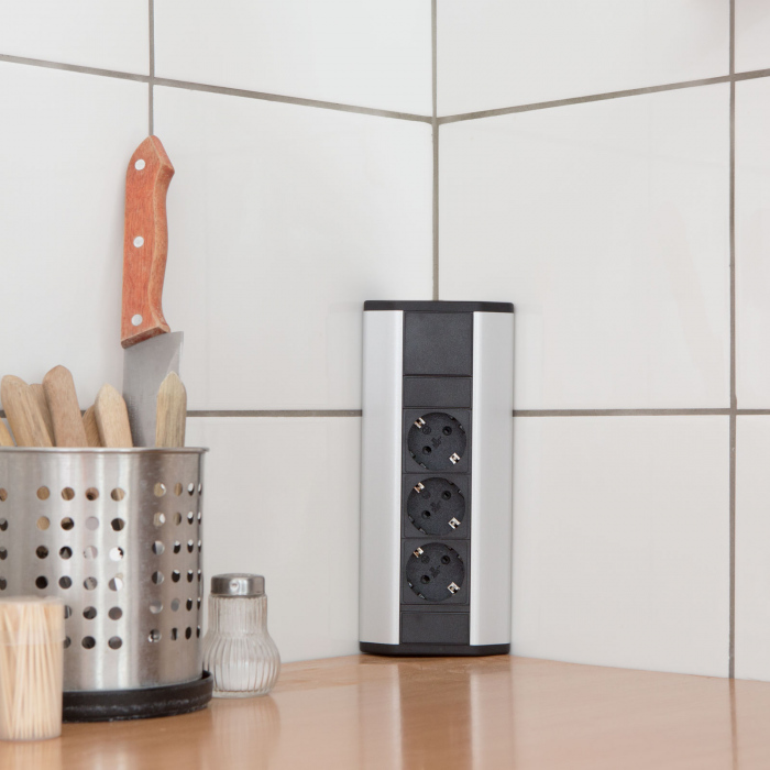 Cu acest distribuitor de colt puteti economisi spatiu pe orice suprafata. Ideal în bucatarii, camere, birouri, sau în orice alta locatie, unde nu mai exista posibilitatea instalarii unei retele electrice suplimentare sau montarea unor prize noi. Prin utilizare puteti evita pozarea cablurilor în perete, sau modificarile importante ale blaturilor de masa. Distribuitorul amplasat în colt economiseste spatiu si pe suprafata peretelui, lasându-va liber suprafata suficienta pt. amplasarea de ex. a ustensilelor de bucatarie.
