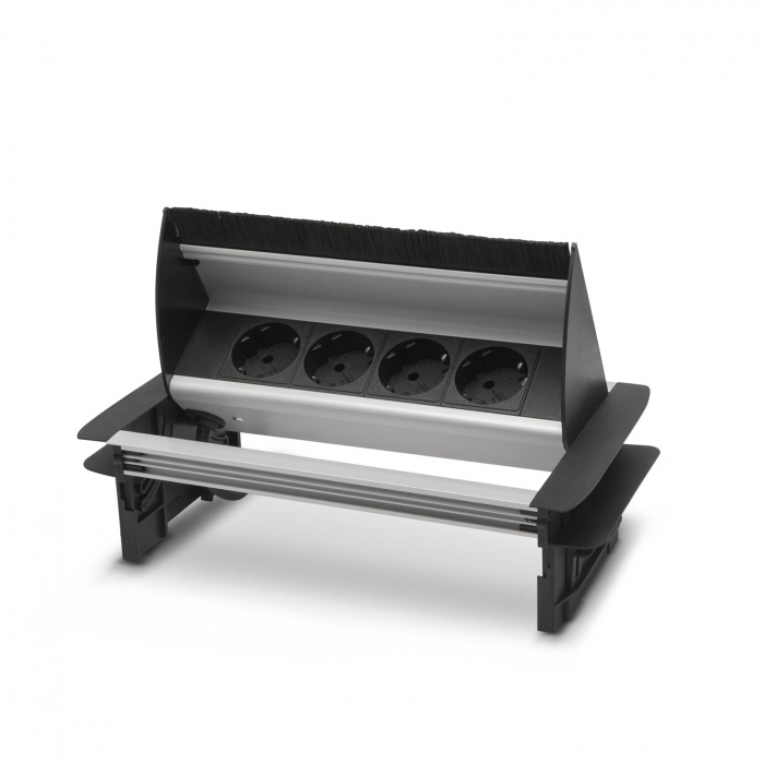 Distribuitor rabatabil cu camuflare pt. uz casnic, sau de birou, cu carcasa metalica, cu prize cu protectie pt. copii. Sa aveti masa si mobila mereu elegante si totusi functionale. Acest distribuitor poate fi solutia ideala în cazul în care dispuneti de o bucatarie deja gata, dar cu prize putine, totusi. În acest caz, nu aveti nevoie de pozarea cablurilor în pereti - distribuitorul camuflat va rezolva problema. O singura miscare si deîndata aveti la dispozitie 4 prize libere. Poate fi ideal si pt. alimentarea unor aparate folosite doar ocazional. Când nu este folosit, distribuitorului poate fi camuflat, usurând operatia de caratire, conferind eleganta spatiului.