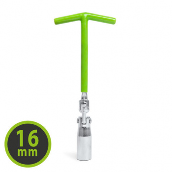 Cheie pt. demontarea/montarea bujiilor, potrivit pt. orice bujie de 21 mm diametru. Mânerul cauciucat ofera priza sigura. Partea articulata ofera acces si în locatii greu accesibile.