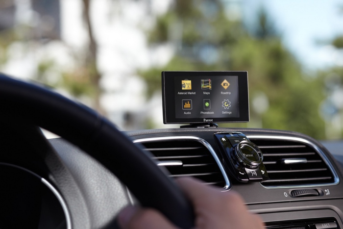 Parrot Asteroid Mini: sistem multimedia ecran 3.2" detasabil cu telecomanda, contacte: 5.000/tel., 50.000/carkit, Dual Mode, TTS, recunoastere vocala avansata, aplicatii de pe Asteroid Market, navigatie: offline sau prin conectare la Internet, afiseaza imagini de pe camera de mers spatele, conectare Internet: tel. mobil, modem 3G/4G, puncte Wi-Fi, S.O. Android 1.5, Compatibil: dispoz. Bluetooth, iPod/iPhone/iPad, USB, card SD, line-in.