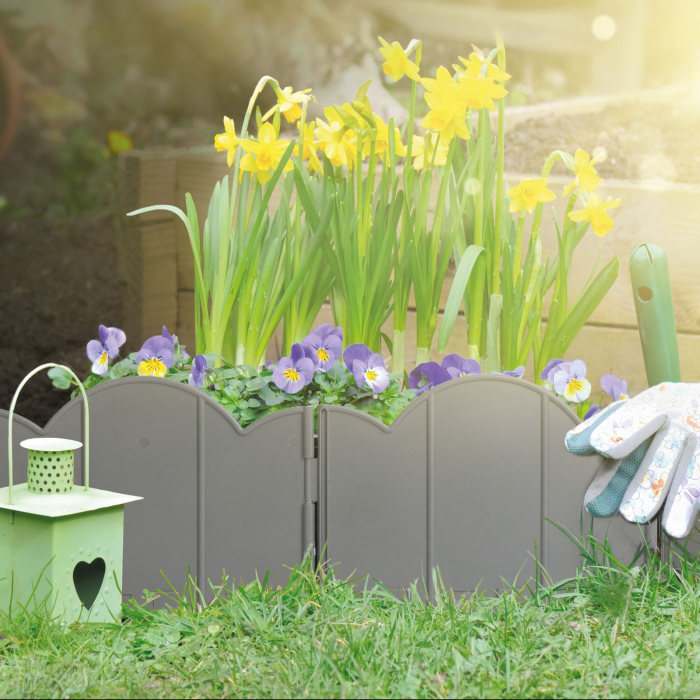 Un gard din plastic care permite delimitarea paturilor de flori, alei de gradina, gradini de legume sau gazon.