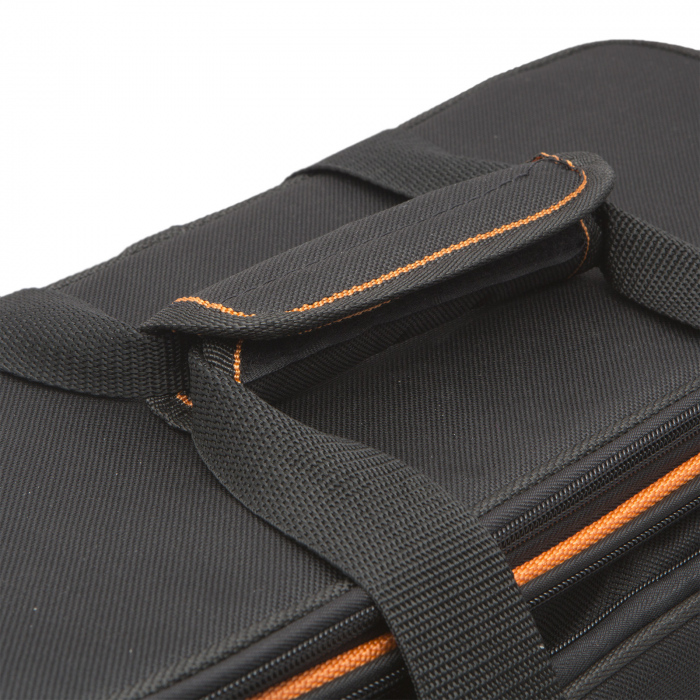 3 buzunare fixe si unul cu clapeta rabatabila, toate într-un spatiu interior rigidizat, capabile sa sustina în siguranta unelte de diferite dimensiuni;