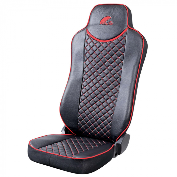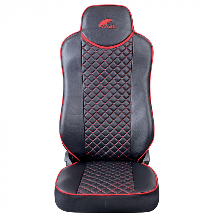 Set 2 huse scaun camion Umbrella, piele, pentru SCANIA SERIA R 2006-2020 Eco, negru - rosu