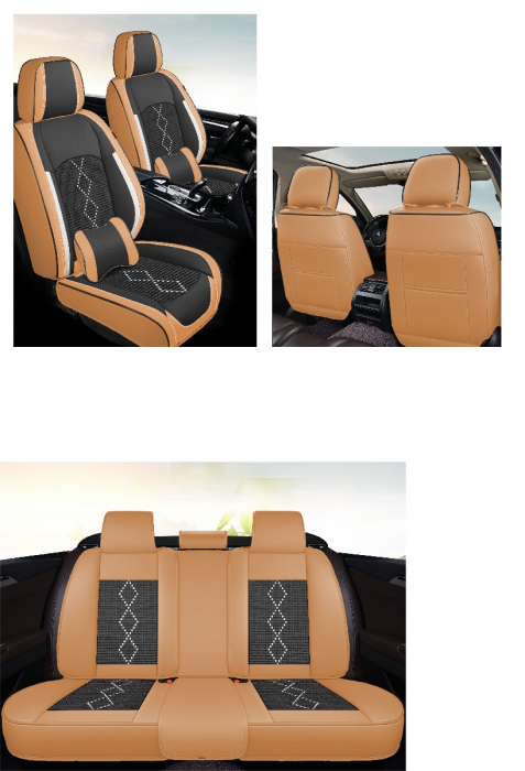 Huse Scaune Auto Premium Carguard Deluxe – piele ecologica & material textil Ice Silk