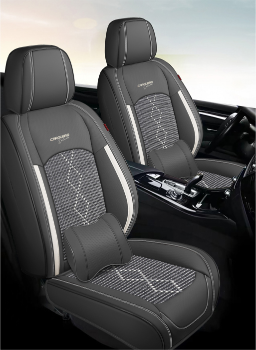 Huse Scaune Auto Premium Carguard Deluxe – piele ecologica & material textil Ice Silk