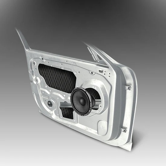Instalarea este simplă, datorită suportului adeziv robust, care asigură o fixare sigură pe panourile exterioare ale difuzoarelor sau pe ornamentele ușilor. Materialul durabil garantează o aderență de lungă durată chiar și în medii solicitante.