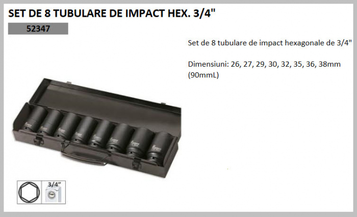 SET DE 8 TUBULARE DE IMPACT HEX. 3/4'' 52347