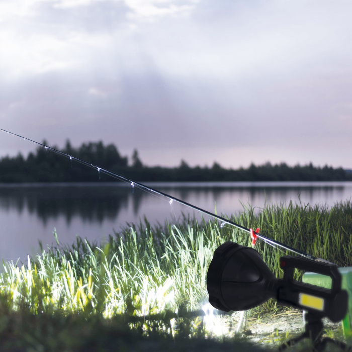 Un proiector cu un design durabil, dimensiuni mici, dar cu o luminozitate enorma, care garanteaza o functionare de lunga durata datorita functionarii cu baterie. LED-ul XPE50 CREE de înalta performanta, extra luminos, poate emite pâna la 200 de metri de lumina strapunzatoare, astfel încât sa poti conta pe el în toate conditiile. Carcasa ergonomica are protectie IP55, astfel încât ofera servicii excelente chiar si pe vreme ploioasa si umeda. Utilizarea comoda a lampii este garantata de doua tipuri de mânere antiderapante, cu nervuri, dintre care unul poate fi transformat într-un trepied cu trei picioare, astfel încât sa poata fi plasat oriunde si sa ilumineze zona de lucru ca o lumina constanta. Poate fi echipament ideal pentru drumeti, vânatori, pescari, echipe de cautare, agenti de securitate sau chiar autoritati.